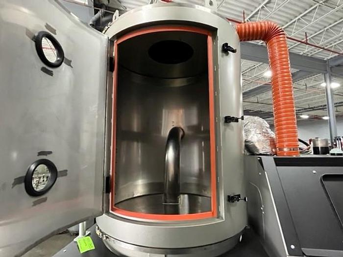 Throughput Capacity: 200 lb./hr. | Hopper Capacity: 600 lb. | Air Connection: 6" | Width: 70.6" | Depth: 37.1" | Height: 93.4" | Voltage: 460/3/60 | VR Package: VR-12-15-EL receiver, VR-12-15-MM-EL receiver, 2lb mm glass hopper, 5" sq. flange adapter with 1.5" ID pass-thru, 1.5" lance & flex hose | Includes: 4" Color Touch Screen PLC Control, Dew Point Analyzer with indicator alarm, Alarm Light, Intelligent regeneration, filter clean alarm, return air cooling coil with plasticizer drain, over-temperature indicator, disconnect switch, floor stand with casters