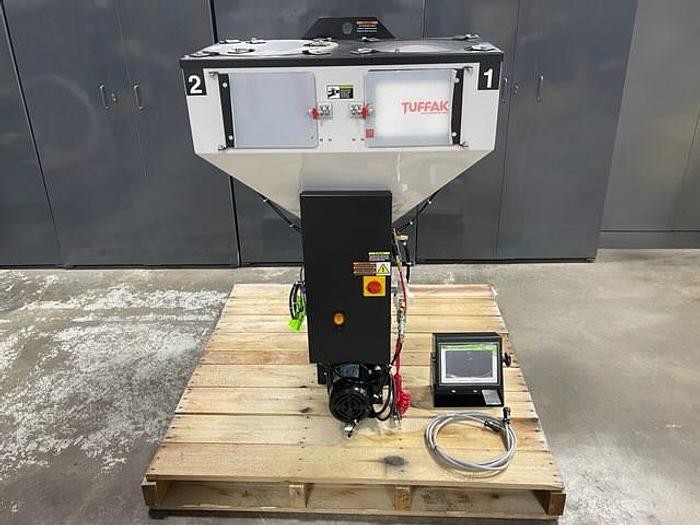 Throughput: 400 lbs/hr | Bin Capacity Main Ingredient: 0.3 ft³ | Bin Capacity Minor Ingredient: 0.2 ft³ | Batch Size: 2.2 lbs. | Max. Number of Materials: 4 | Number of Vertical Discharge Valves: 4 | Voltage: 110/1/50 | Option: Floor stand available with extra cost