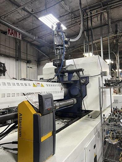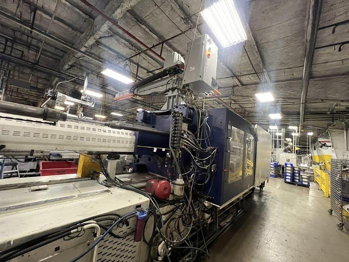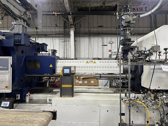 C Screw, Includes: Pneumatic/Hydraulic Valve Gates, (3) Core Pulls, Air Valves (10 mm) - 4 movable, 2 stationary, Swivel Injection Unit, SPI Robot Interface, Pneumatic Shut off Nozzle, Increased Min/Max Mold Height (both by 100 mm), Configurable I/O's in Control (6in/6out), Integrated servo-hydraulic power unit for core pull, valve gates, ejectors & nozzle contact